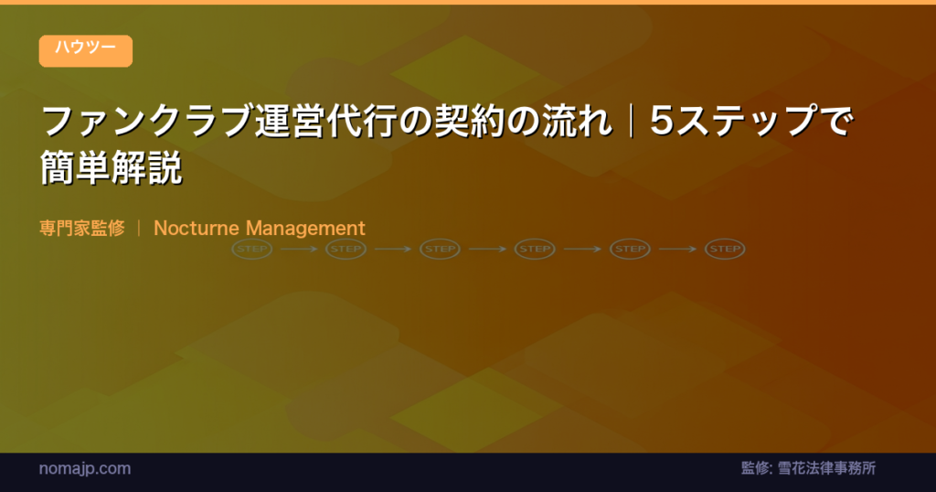 「ファンクラブ運営代行に興味はあるけど、どうやって始めればいいの?」「契約って難しそう…」そんな不安を抱えている方に向けて、この記事では運営代行の契約の流れを5ステップでわかりやすく解説します。 お問い合わせから運用開始まで、実際の流れと所...