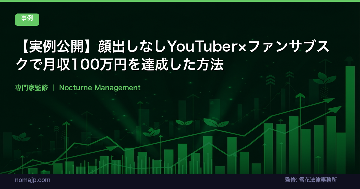 📋 E-E-A-T情報:この記事はノクターンマネジメントが実際に支援したクリエイターの事例に基づいています。数値はご本人の許可を得た上で、プライバシー保護のため一部ぼかして掲載しています。