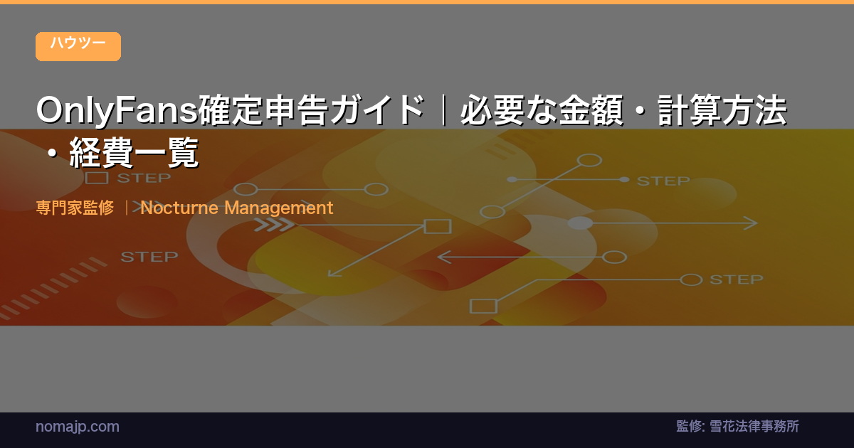 この記事では、OnlyFansの確定申告を2026年最新情報で解説します。副業と本業で異なる申告基準、ドル建て収入の円換算方法、経費にできるもの一覧まで、税金で損しないための情報をまとめました。