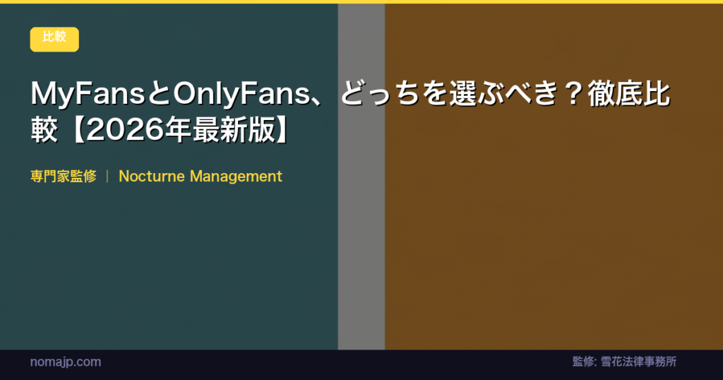MyFansとOnlyFans、どっちを選ぶべき?徹底比較【2026年最新版】 ファンクラブサイトでの収益化を考えている方にとって、「MyFans」と「OnlyFans」のどちらを選ぶべきか悩んでいませんか?手数料、決済方法、日本語対応、収益化のしやすさなど、様々な観点... -